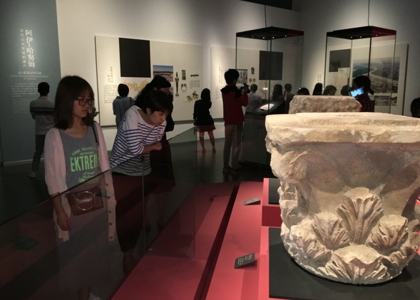 當(dāng)天,恰逢偶遇來成都巡展的《文明的回響:來自阿富汗的珍寶展》,在展廳內(nèi)共展出了阿富汗國家博物館231件(套)頂級文物。提及阿富汗,大多數(shù)人腦海中閃現(xiàn)的第一個(gè)詞往往是“戰(zhàn)爭”,但事實(shí)上,位于中亞腹地的阿富汗,一個(gè)有五千多年歷史的文明古國,曾是絲綢之路的中心、四方文化的匯集之地,草原文明、希臘─羅馬文明和漢文明、印度文明都曾在這里碰撞并沉淀出獨(dú)特的文化魅力。展廳中的純金打造的草原民族王冠、希臘女神阿芙洛狄忒的金飾片、君主與龍的頭墜金飾件……濃郁的異域色彩,一件件文物巧奪天工,令我們的團(tuán)員青年們印象深刻,連連發(fā)出贊嘆之聲。